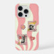 A playful retro phone case featuring a soft bubblegum pink tones and portraits of cats, bringing groovy everyday vibes.