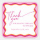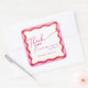 Retro Pink and Orange Wavy Border Thank You Square Sticker