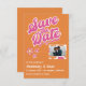 Mark the beginning of your journey to forever with our lively Retro Pink and Orange Save the Date Card! Merging the enduring allure of retro design with a fresh, contemporary flair, this design strikes the perfect balance between nostalgia and modern elegance. The vibrant hues of pink and orange infuse your save the date with a joyful and dynamic energy. Fully customisable text and upload a cherished photo to create a uniquely personalised keepsake.