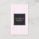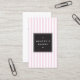 Chic pink and white stripes bring a retro personality to this bakery business card. Reminiscent of ice cream parlours and candy shops of yesterday, this design is sure to bring a touch of nostalgia to your business brand. Created for bakeries, cake decorators, catering companies, sweets, home baked goods or any business looking for a stylish motif. Your name is simply styled in a black square on the front, while your contact info and details are available on the backside. Design © 1201AM Design Studio