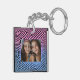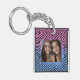 Retro Pink Blue Gradient Zebra Stripe Photo Frame Key Ring