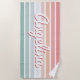 Retro Pink & Blue Stripe Personalised Name Beach Towel