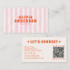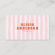Retro Pink Boho Groovy Pinstripes Girly QR Code Business Card