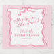 Celebrate the bride-to-be with these retro, hand drawn pink bow "she's tying the knot" themed sparkling wine labels. This pink bow bridal shower wine label can be customised with your own details and is available in multiple sizes.