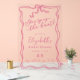 Welcome your guests and celebrate the bride-to-be with these retro, hand drawn pink bow "she's tying the knot" themed acrylic welcome signs. This pink bow bridal shower acrylic sign can be customised with your own details and is available in multiple sizes.