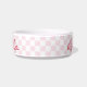 Retro Pink Chequered Cat Kitty Puppy Pet Name Food Bowl