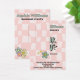This charming hair accessory display card feature a playful pink and white chequered background with retro flowers. The font is a bold vintage retro style fully customazible in the design edit tool. The back includes a warm “Thank You” message, along with space for contact details like your shop's website, email, and phone number. Perfect for presenting your handmade jewellery, bows, clips and more with style and adding a fun personal touch.