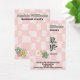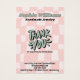 This charming jewellery display card feature a playful pink and white chequered background with retro flowers. The font is a bold vintage retro style fully customazible in the design edit tool. The back includes a warm “Thank You” message, along with space for contact details like your shop's website, email, and phone number. Perfect for presenting your handmade jewellery with style and adding a fun personal touch.