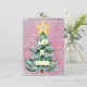 Retro Pink Christmas Tree Holiday Card