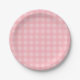 Retro Pink Gingham Chequered Pattern Background Paper Plate
