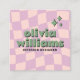 Retro Pink Green QR Code Groovy Checkered Girly Square Business Card