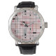 This Retro Pink Grid and Starbursts Leather Watch is where vintage style meets modern day. It features a light pink background with kitschy, off kilter squares and rectangles in dove grey and three shades of pink. The whimsical blocks of colour are overlayed and worked into some of the grid intersections. There are also black rectangles with black vertical and horizontal lines forming a grid pattern. Black starburst designs and squares are placed sporadically throughout this mid century modern tapestry of colour. This design features the most common pink colours found in vintage bathrooms. Grab your go-go boots and bell-bottoms and enjoy this throwback to the 1960s.