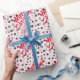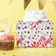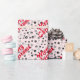 Unique, modern, retro pastel pink and red Merry Christmas wrapping paper with cute black and white tree ornaments, hand drawn pattern.