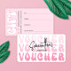 Trendy pink aesthetic gift card design with nostalgia fonts, blush pink colours and space for your logo and business details. The perfect gift voucher design for makeup artists, hair stylists, cosmetologists, and more!