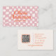 Retro Pink Orange Chequered Groovy Girly QR Code Business Card