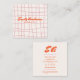 Retro Pink Orange Hand Written Drawn Groovy Girly Square Business Card