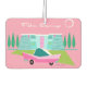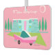 Between the pink background, turquoise mid century modern home, and the classic 1950s car, this design couldn’t be more Palm Springs if it said it in the clouds. Oh, wait, it does say it in the clouds! The blue and teal stone of the house is offset by the sputnik light fixtures framing the hot pink door. This kitschy, retro design welcomes you to live your most fabulous life.