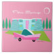 Between the pink background, turquoise mid century modern home, and the classic 1950s car, this design couldn’t be more Palm Springs if it said it in the clouds. Oh, wait, it does say it in the clouds! The blue and teal stone of the house is offset by the sputnik light fixtures framing the hot pink door. This kitschy, retro design welcomes you to live your most fabulous life.
