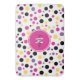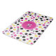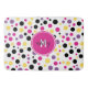 Retro Pink Purple Monogram Polka Dots Bath Mat. A fun and fresh design with various polka dots in hot pink, periwinkle, yellow, and black on a white background. Personalise the bath mat with your monogram and name and spruce up your bathroom with this colourful, cheerful design. There's a matching shower curtain available as well.