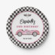 Retro Pink Race Car Two Fast Girl Birthday Paper Plate