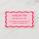 Retro Pink Red Bridal Shower Share A Recipe Enclosure Card