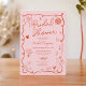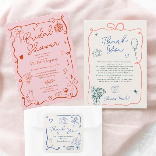 Celebrate love in style with our charming Retro Pink Red Bridal Shower Invitation! This hand-drawn illustrated vintage French design exudes elegance and whimsy, featuring delicate squiggles, wavy edge frames, and intricate sketches of food and drinks, including wine glasses, cocktails, and delectable treats. The heartwarming details and hand-written font add a personal touch, while the editable colours allow you to customise the invitation to match your bridal shower theme perfectly. Get ready to shower the bride-to-be with love and laughter in a truly enchanting setting. Let the festivities begin!