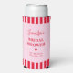 Retro Pink & Red Stripes Bridal Shower Custom Seltzer Can Cooler