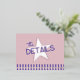 Complete your wedding invitation suite with this retro-inspired wedding details card, designed in soft blush pink and lavender with a bold star accent and playful stripe detailing. Perfect for spring and summer weddings, this card neatly organizes reception, accommodation, transportation, and additional event information in a clean yet nostalgic layout. Ideal for couples planning a modern vintage, disco-themed, or pastel spring wedding, this details insert coordinates seamlessly with matching invitations, RSVP cards, and envelopes from the collection. Fully customizable for text, colors, and layout.