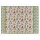 Whimsical retro inspired panel features pink birds on branches with yellow flowers, surrounded by green dot grid pattern