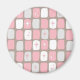 This Retro Pink and White Starbursts Round Magnet is so adorably space age you won’t be able to contain your enthusiasm. And, why would you want to? This 1960’s mid century modern inspired design features a dark heather grey background and rows of perfectly imperfect rectangles in turquoise, white, and dove grey. Kitschy white and pink starbursts are placed in randomly selected rectangles. This mod pattern will make you feel like you jumped in a time machine and set the dial for irresistibly vintage!