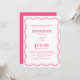 Introducing the Retro Pink Wavy Formal Wedding Invitation, where playful squiggle curves in bold, contrasting colours meet elegant calligraphy to create a visual delight. This modern and contemporary stationery exudes a soft, fun, and whimsical charm, perfect for couples looking to break away from the traditional. Trendy and wavy, this invitation promises to make a memorable statement, setting the tone for a unique and unforgettable wedding celebration.