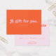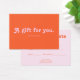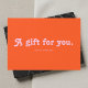 Add a touch of retro charm to your gifting options with this stylish gift card, perfect for both small businesses and school functions. The front captures a fun, vintage feel with a bold "A Gift ForYou" heading in the decorative "Tango" font, set against a nostalgic color palette of retro orange and pink. All supporting details are presented in the clean, highly-readable sans-serif font "Lato," ensuring clarity. The back is thoughtfully designed with essential spaces for "To" and "From," the gift amount, and your contact information, making it a versatile and practical choice for boutiques, cafes, or school stores and fundraisers.