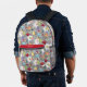 This personalised printed backpack has a retro poker night pattern with a vintage mid century modern design. Playing cards and poker chips all on a grey and pastel colour pallet. You can make the pattern on the backpack larger or smaller. A great design for anyone that loves mid-century modern design.