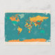 Retro political world map featuring on a distressed background. The map includes country names, borders and sea names.