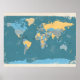 Retro political world map featuring on a distressed background. The map includes country names, borders and sea names.