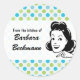 A vintage illustration of a pointing woman against a cyan and green polka dot background form the visual base for this cute sticker. Use the "From the Kitchen of" expression or make it your own and add your own (or someone else's) name. Write in your dish name below. Available in alternate designs and colour combinations. Contact me through this store if you're interested in a different colour combination or background.
