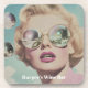Retro Pop Art Pink and Blue Space Woman Coaster