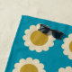 Retro Pop Flowers Pattern Turquoise Personalised Beach Towel