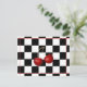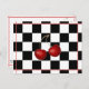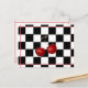 Red cherries and ric-rac against black and white checks. See the matching postage stamps, too!