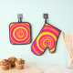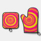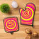 Retro Potholders Pink Orange Yellow Circles Oven Mitt & Pot Holder Set