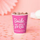 This retro inspired bridal shower paper cup features a bright pink background with pink stars and retro inspired typography. The look is fun, feminine, and happy!