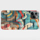 A vibrant, three-dimensional abstract background composed of numerous interconnected square blocks. The surface of these blocks is adorned with a swirling, psychedelic pattern featuring a retro colour palette of warm reds, oranges, teals, and beige tones. The arrangement creates a textured, puzzle-like effect with a distinct 1970s aesthetic