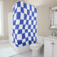 Retro Psychedelic blue wavy checkered Pattern Shower Curtain