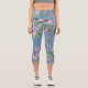 Retro Purple, Green and Blue Wildflowers on Pink Capri Leggings