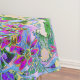 Retro Purple, Green and Blue Wildflowers on Pink Tablecloth