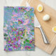Retro Purple, Green and Blue Wildflowers on Pink Tea Towel