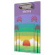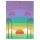 Modern colorful personalised clipboard with retro style sunset and palm trees art.