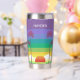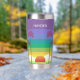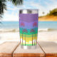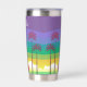Modern colorful personalised tumbler with retro style sunset and palm trees art.