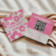 Retro QR Code Pink Groovy Floral Boho Girly Trendy Square Business Card