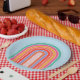 Abstract Retro Rainbow – Colourful Rainbow – Blue Background.
